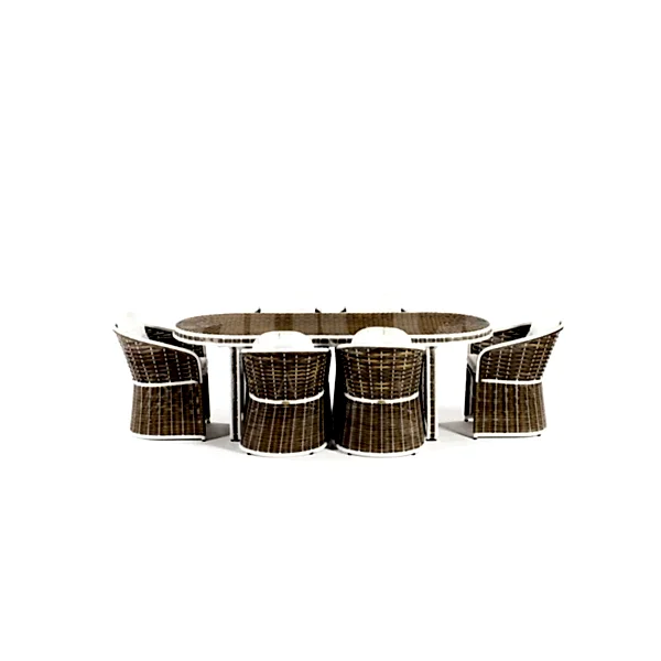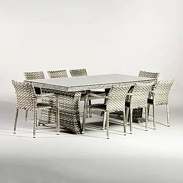 Dikdörtgen masa, rattan modellerde çok tercih ediliyor. Dikdörtgen rattan masa modelleri de kullanılan malzemeye göre ayrılıyor. Bahcce’de bulabileceğiniz Mimosa yemek takımı gibi bazı modellerde alüminyum iskelet üzerine rattan örgü uygulanıyor. Bu modelde; farklı masa ölçüsü seçenekleri ve renk alternatifleri bulunuyor. Cam tabanlı masa, çapraz ayakları ile oldukça şık görünüyor.