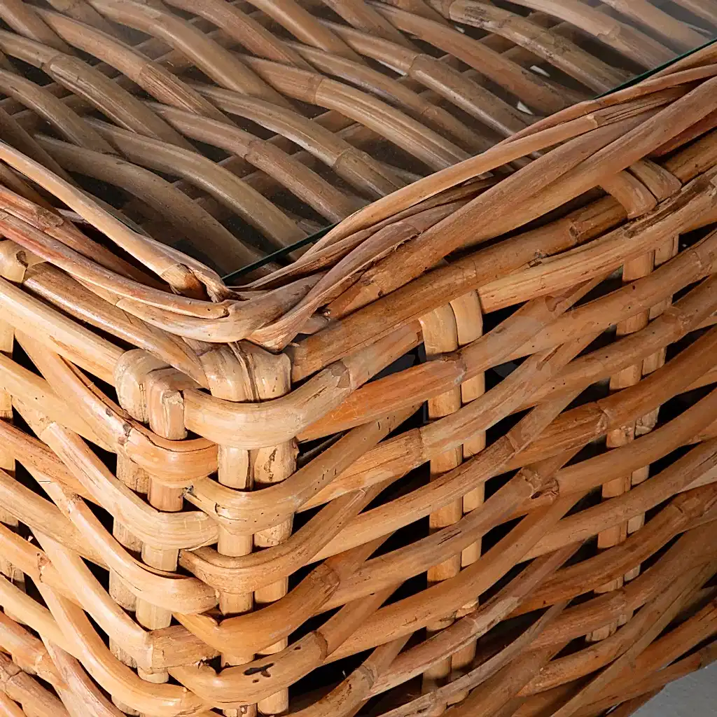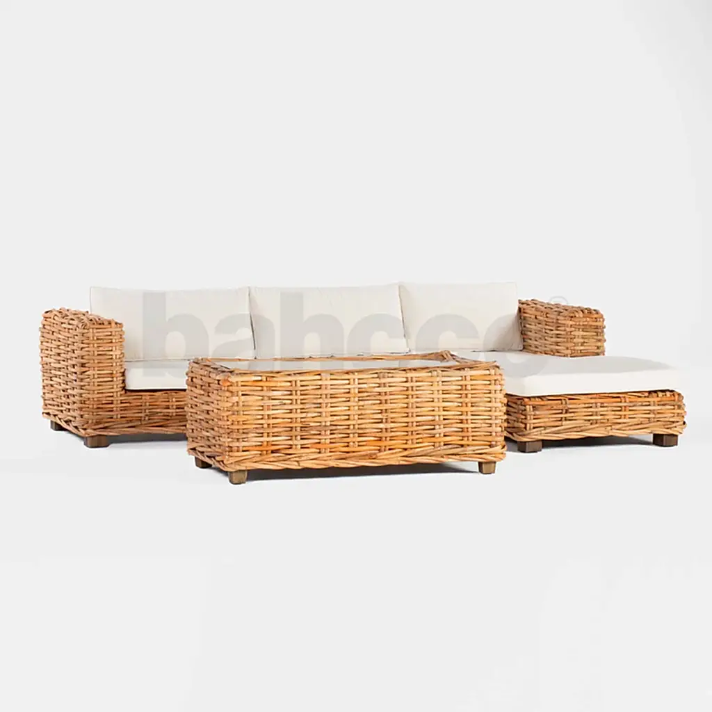 Doğal Rattan Oturma Grubu, Cam Tablalı Sehpa